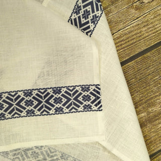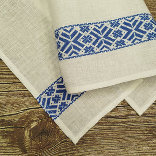 Lina dvielis | kolekcija «Jostu raksti» | Lielvārdes jostas motīvs | tumši zils