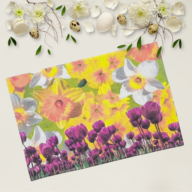 Elegantais un pavasarīgais lina dvielis ar krāšņām tulpēm un narcisēm ir kā maza ziedu pļava tavā virtuvē. Pavasara puķes ir populārākais svētku rotājums, un šis dabīgā auduma izstrādājums ar tiešās digitālās drukas palīdzību izceļ katru ziedlapiņu. Skaists un ekoloģisks papildinājums saulainam mājas interjeram.