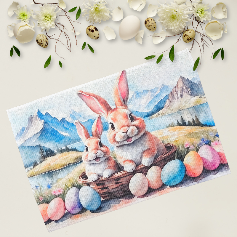 Krāsains un dzīvespriecīgs lina virtuves dvielis, kurā attēlota jautra zaķu ģimene kopā ar raibām Lieldienu olām dabas ainavas fonā. Šis dizains ienesīs telpā pavasarīgu un draudzīgu atmosfēru. Ideāla izvēle tiem, kas meklē oriģinālus un košus svētku dekorus savai mājai vai vēlas iepriecināt tuviniekus.